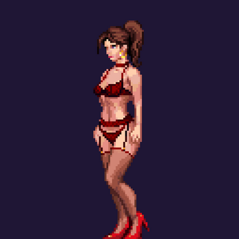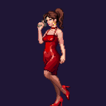 Inside this pack, you'll discover a stunning 128-pixel tall, anatomically accurate female pixel art character—truly the femme fatale of pixel art!