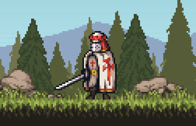Added a new crusader character adorned in a flowing white cape emblazoned with a bold red cross, with a shiny sword in one hand. With an aura of bravery and purpose!